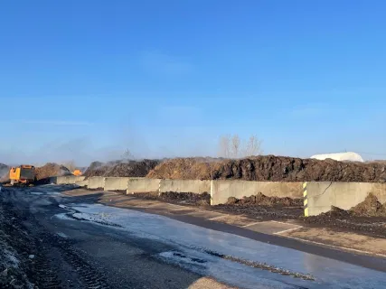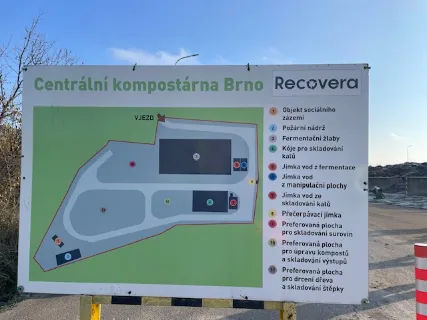 Má největší povolenou kapacitu v České republice - 70 000 t odpadu ročně. Je velmi významným producentem kvalitních organických hnojiv a substrátů. Mimo obohacení půd o chybějící organickou složku a zkvalitnění půd, pomáhá snížit množství BRO (biologicky rozložitelných odpadů) ukládaných na skládku a tím snížení produkce skleníkových plynů (metanu). Žáci viděli celý průběh výroby kompostu od návozů jednotlivých druhů BRO, jejich drcení, tvorbu zakládky, zrací proces, až po výslednou homogenizaci a sítování, na jehož konci vzniká kvalitní kompost s obchodním názvem Černý drak, nebo po smísení se zeminou substrát Šedý drak. Součástí kompostárny je i výroba dřevní štěpky, kterou využívají jako palivo pro kotle na biomasu na vyhřívání hal na jiném provozu.