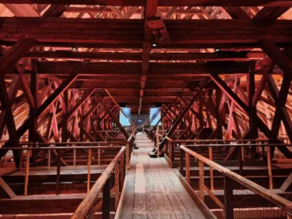 Hlavním bodem exkurze byla návštěva rozsáhlého dřevěného krovu, který patří k největším a nejcennějším gotickým krovům v České republice. Studenti měli jedinečnou možnost nahlédnout do konstrukce, která po staletí plní svou statickou funkci bez zásadních zásahů moderní techniky.