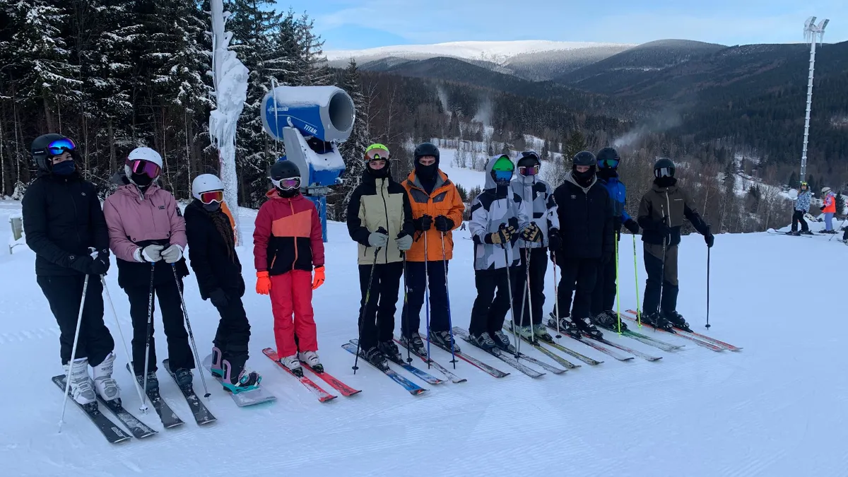 Ve dnech 4. až 9. ledna 2026 proběhl tradiční lyžařský výcvikový kurz pro žáky prvních ročníků, který letos hned od začátku prověřil naši odolnost. Přivítalo nás mrazivé počasí a sjezdovky držela při životě sněžná děla jedoucí na plný výkon – alespoň v prvních dnech kurzu.