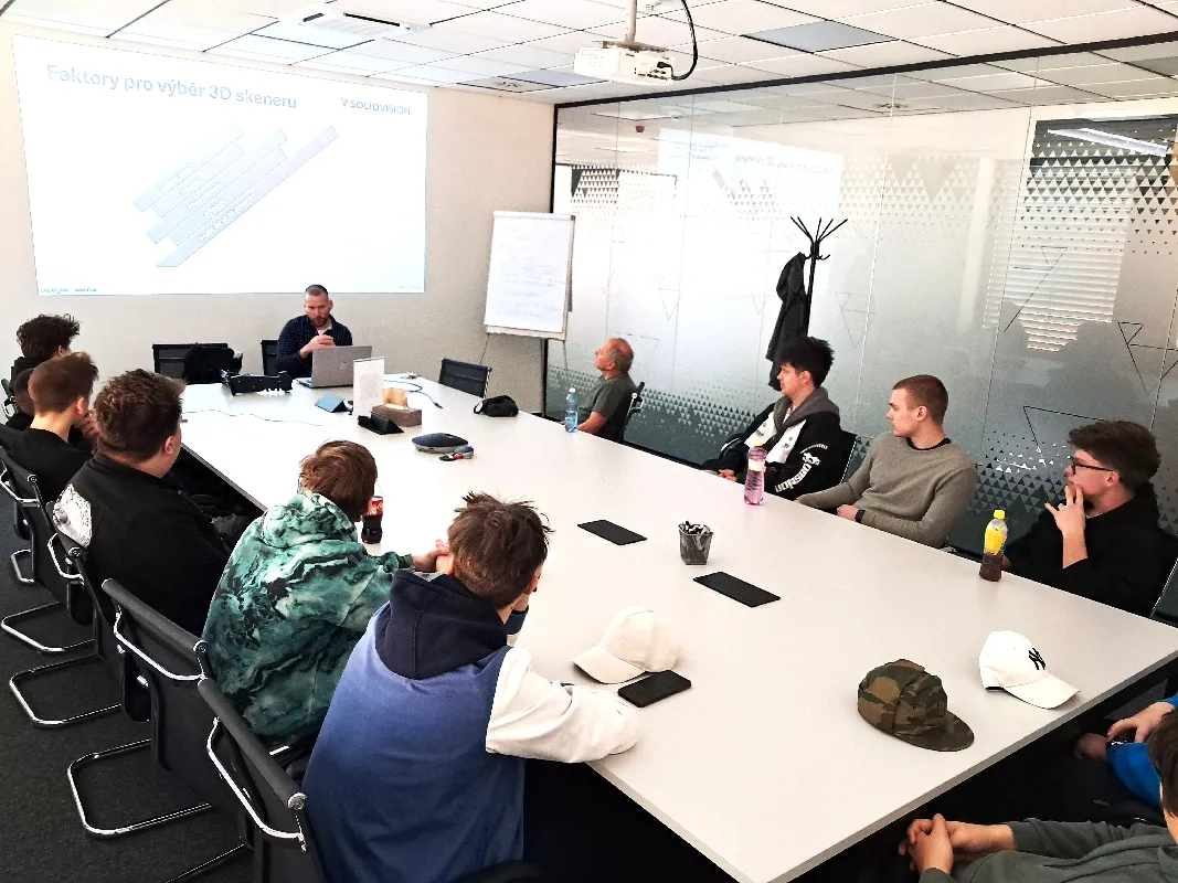VÝUKA ODBORNÍKY FIRMY SOLIDVISION před 3 dny|Informační sdělení 6× Dne 20. března 2026 absolvovali žáci 3. ročníku „Programování a obsluha CNC strojů a robotických pracovišť“ oboru obráběč kovů výuku ve firmě SolidVision v Brně.